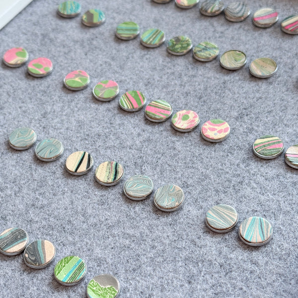 Marbling is an endangered heritage craft, typically seen in books and paper products. The marbling pattern image is a representation only and may differ slightly as each pattern made is one of a kind, as the paints move on the surface of the water. For more information on marbling, visit my Marbling page