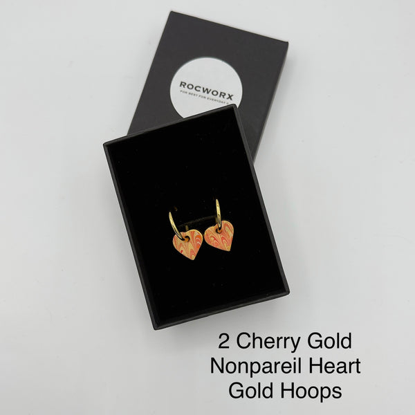 READY TO SHIP MARBLED BALLET SLIPPER LEATHER HEART GOLD PLATED HOOP EARRINGS 20MM- Regular price