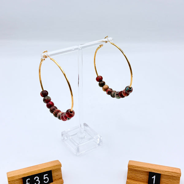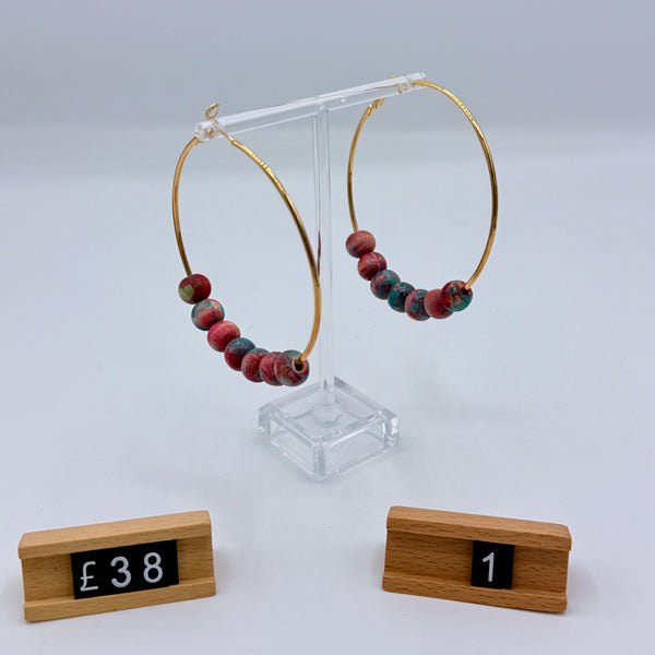 READY TO SHIP MARBLED WOODEN BEAD GOLD PLATED 50mm HOOP EARRINGS- Regular price