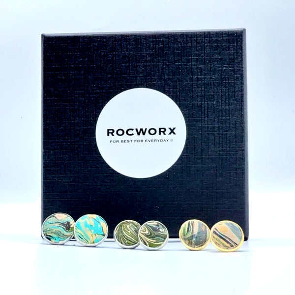 Sale Sold out{"id":8770767159451,"title":"STUD EARRINGS GOLD PLATED","handle":"stud-earrings-gold-plated","description":"\u003cp\u003eThese earrings are created from \u003cspan\u003erepurposed ballet slippers, kindly donated by The Royal Ballet and Opera, London and recycled gold plated studs. Each pair sold, support the incredible work of the food bank \u003c\/span\u003echarity, The Trussell Trust (UK), through an annual donation.\u003c\/p\u003e\n\u003cp\u003eEach earring set is one-of-kind textile art, even each stud pattern is unique and cannot be replicated by the artist. The earring leather is marbled in a variety of colours and abstracted heritage patterns. The images are a representation of the marbling pattern only.\u003c\/p\u003e\n\u003cp\u003eChoose a colour to be included in the pattern design. Each colour-way below will include at least two of the colours listed. Get in touch when you’ve ordered, if you would like a specific colour not listed below, or if you prefer stripe to organic shapes \u003c\/p\u003e\n\u003cp\u003e \u003c\/p\u003e\n\u003cp\u003e\u003cstrong\u003eApproximate measurements\u003c\/strong\u003e\u003c\/p\u003e\n\u003cp\u003eThe marbled leather is set in gold-plated studs.\u003c\/p\u003e\n\u003cul\u003e\n\u003cli\u003e10mm \u003cbr\u003e\n\u003c\/li\u003e\n\u003c\/ul\u003e\n\u003cp\u003e \u003c\/p\u003e\n\u003cp\u003e\u003cstrong\u003eGift Wrapping Service\u003c\/strong\u003e\u003c\/p\u003e\n\u003cp\u003eComplimentary gift boxed and gift wrapping service, wrapped in beautiful hand decorated ink marbled paper. If order is a gift, contact me and I will leave the gift wrap open for you to see the earrings before gifting.\u003c\/p\u003e\n\u003cp\u003e \u003c\/p\u003e\n\u003cp\u003e\u003cstrong\u003e\u003cspan\u003eCare Instructions\u003c\/span\u003e\u003c\/strong\u003e\u003c\/p\u003e\n\u003cul\u003e\n\u003cli\u003eRemove before bathing, showering \u0026amp; swimming\u003c\/li\u003e\n\u003cli\u003eRemove jewellery before exercise and before bed\u003c\/li\u003e\n\u003cli\u003eAvoid direct contact with perfume, skin care products and chemicals\u003c\/li\u003e\n\u003cli\u003eStore jewellery separately in an airtight box or sealed bag\u003c\/li\u003e\n\u003c\/ul\u003e\n\u003cp\u003e \u003c\/p\u003e\n\u003cp\u003eFor more information about my approach and philosophy to sustainably making, look at my \u003ca title=\"ENVIRONMENTAL IMPACT, SUSTAINABILITY \u0026amp; PROVENANCE\" href=\"https:\/\/www.rocworx.co.uk\/ENVIRONMENTAL%20IMPACT,%20SUSTAINABILITY%20\u0026amp;%20PROVENANCE\"\u003eEnvironmental\u003c\/a\u003e page\u003c\/p\u003e\n\u003cp\u003e\u003cstrong\u003eA bit about the marbling...\u003c\/strong\u003e\u003c\/p\u003e\n\u003cp\u003eMarbling is an endangered heritage craft, typically seen in books and paper products. The marbling pattern image is a representation only and may differ slightly as each pattern made is one of a kind, as the paints move on the surface of the water. For more information on marbling, visit my\u003ca href=\"https:\/\/www.rocworx.co.uk\/marbling\" title=\"Marbling\"\u003e Marbling\u003c\/a\u003e page\u003c\/p\u003e\n\u003cp\u003e\u003cstrong\u003e\u003c\/strong\u003e \u003c\/p\u003e\n\u003cp\u003e \u003c\/p\u003e","published_at":"2025-11-18T18:45:50+00:00","created_at":"2025-11-18T18:39:37+00:00","vendor":"Rocworx.co.uk","type":"","tags":["accessories","earrings","for her","gifts for her","gold jewellery","gold plated earrings","jewellery","Leather","marbled leather","marbled leather earrings","marbling","no-personalisation","stocking filler","studs","under £50","wearable art","£5 - £50"],"price":6300,"price_min":6300,"price_max":6300,"available":true,"price_varies":false,"compare_at_price":null,"compare_at_price_min":0,"compare_at_price_max":0,"compare_at_price_varies":false,"variants":[{"id":47567013970075,"title":"Racing Green\/Gold\/Black","option1":"Racing Green\/Gold\/Black","option2":null,"option3":null,"sku":null,"requires_shipping":true,"taxable":true,"featured_image":{"id":44025939165339,"product_id":8770767159451,"position":1,"created_at":"2025-11-18T11:21:28+00:00","updated_at":"2025-11-18T18:45:04+00:00","alt":"Marbled ballet slipper leather stud earrings in stainless steel 10mm and 12 mm with gold plated 100 stud earrings","width":2604,"height":3472,"src":"\/\/rocworx.co.uk\/cdn\/shop\/files\/ROCWORX_Shop_Gold_Plated_Studs.jpg?v=1763491504","variant_ids":[47567013970075,47567014035611,47567014101147]},"available":true,"name":"STUD EARRINGS GOLD PLATED - Racing Green\/Gold\/Black","public_title":"Racing Green\/Gold\/Black","options":["Racing Green\/Gold\/Black"],"price":6300,"weight":100,"compare_at_price":null,"inventory_management":"shopify","barcode":"","featured_media":{"alt":"Marbled ballet slipper leather stud earrings in stainless steel 10mm and 12 mm with gold plated 100 stud earrings","id":35046670532763,"position":1,"preview_image":{"aspect_ratio":0.75,"height":3472,"width":2604,"src":"\/\/rocworx.co.uk\/cdn\/shop\/files\/ROCWORX_Shop_Gold_Plated_Studs.jpg?v=1763491504"}},"requires_selling_plan":false,"selling_plan_allocations":[]},{"id":47567014035611,"title":"Teal\/Blue\/Gold\/Black","option1":"Teal\/Blue\/Gold\/Black","option2":null,"option3":null,"sku":null,"requires_shipping":true,"taxable":true,"featured_image":{"id":44025939165339,"product_id":8770767159451,"position":1,"created_at":"2025-11-18T11:21:28+00:00","updated_at":"2025-11-18T18:45:04+00:00","alt":"Marbled ballet slipper leather stud earrings in stainless steel 10mm and 12 mm with gold plated 100 stud earrings","width":2604,"height":3472,"src":"\/\/rocworx.co.uk\/cdn\/shop\/files\/ROCWORX_Shop_Gold_Plated_Studs.jpg?v=1763491504","variant_ids":[47567013970075,47567014035611,47567014101147]},"available":true,"name":"STUD EARRINGS GOLD PLATED - Teal\/Blue\/Gold\/Black","public_title":"Teal\/Blue\/Gold\/Black","options":["Teal\/Blue\/Gold\/Black"],"price":6300,"weight":100,"compare_at_price":null,"inventory_management":"shopify","barcode":"","featured