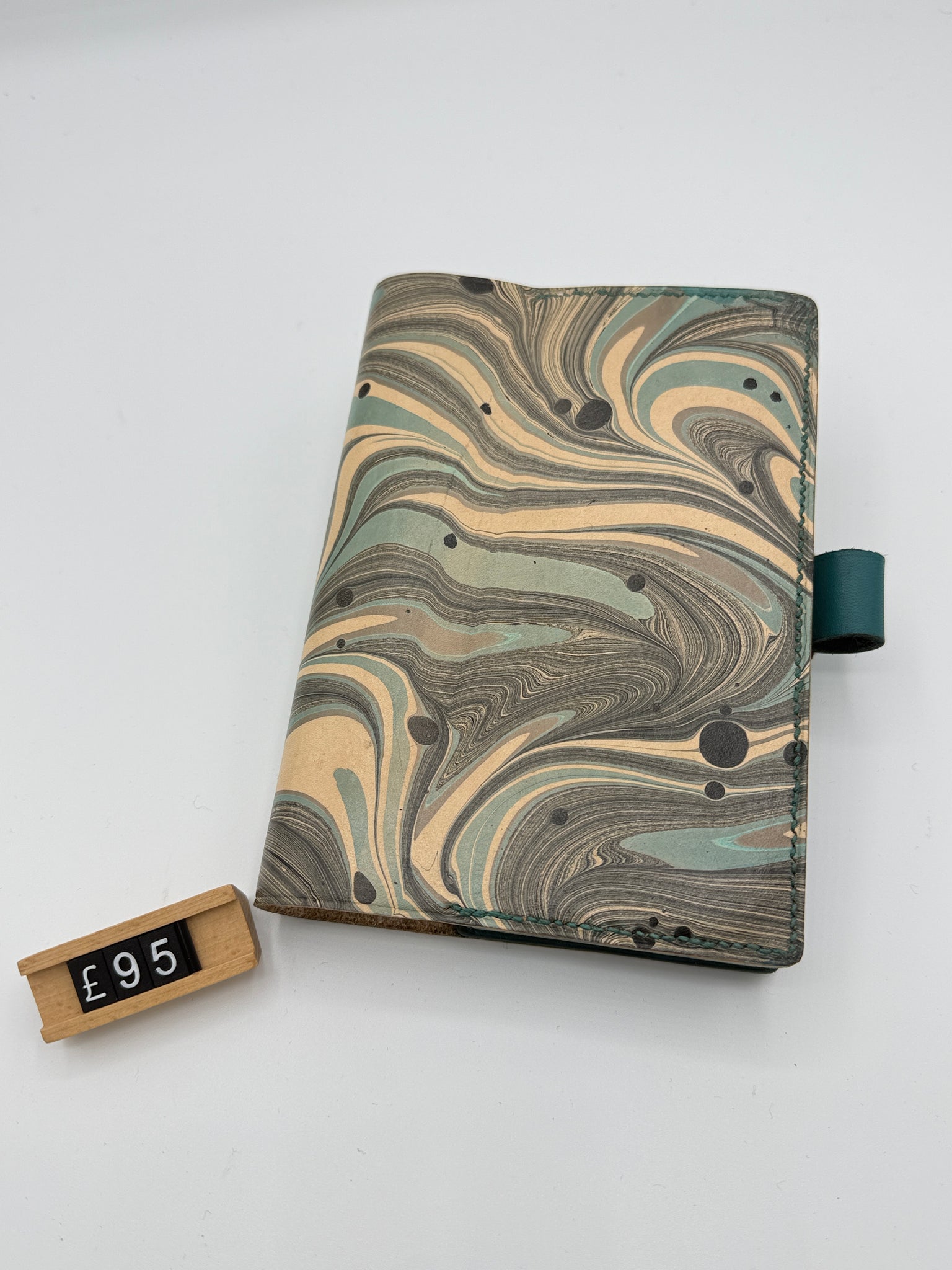 A6 marbled leather hand stitched journals.  each journal is hand cut, hand decorated and has hand saddle-stitched pockets using waxed French linen thread.  These journals are branded with my ROCWORX logo for authentic British craftsmanship on the inside back cover. My commitment to quality means I offer a guarantee for repair and care of all my leather goods.  Each journal is crafted with durability in mind and. . . Show More >