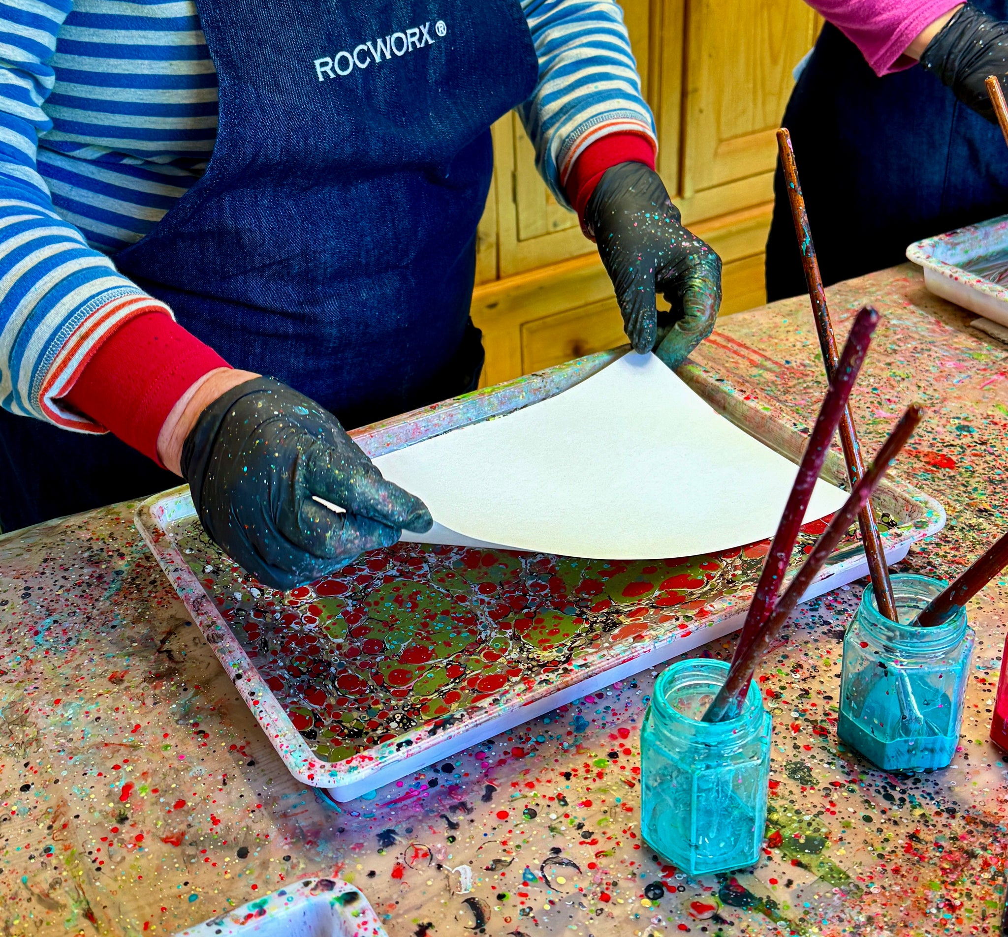 A perfect activity for adults looking to explore their creativity, play with colour and learn a new skill in this fun and informative workshop experience. You will be guided through the process of preparing your paper and paints, the marbling bath and the tools required to create patterns.